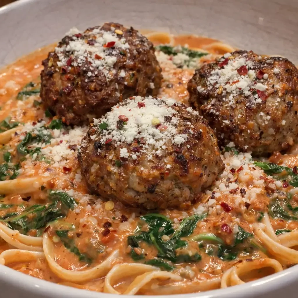 Over Spinach Pasta and Vodka Sauce