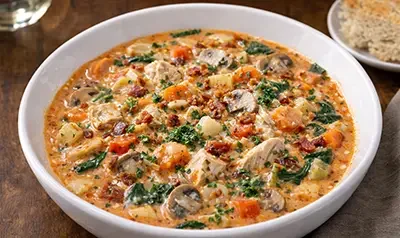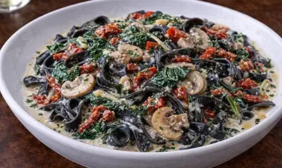 Spinach, Sun-dried Tomato, Mushrooms, Peppers, Truffle Oil, and Creamy Sauce