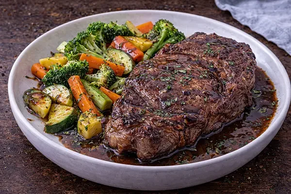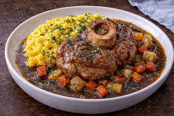 Served with Saffron Risotto, Braised Root Vegetables, and Brown Cognac Sauce