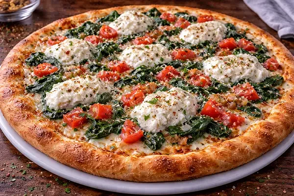 Ricotta, Spinach, Garlic, Tomato, and Mozzarella