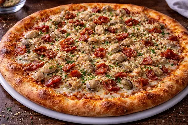 Chopped Clams, Bacon, Garlic Parmesan, and Mozzarella