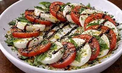Tomato, Fresh Basil, Mozzarella Cheese, Truffle Oil, and Balsamic Glaze