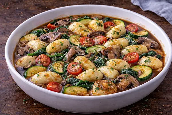 Wild Mushrooms, Zucchini Squash, Spinach, and Fresh Cherry Tomato in a Madeira Wine Sauce