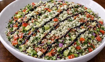 Mixed House Vegetable and Gorgonzola Cheese, Finished with Balsamic Reduction