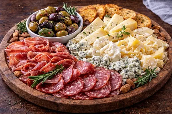 Imported Cheeses, Cured Meat, and Marinated Olives (4 People)