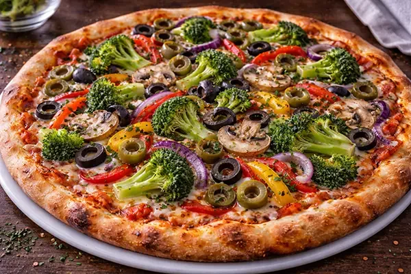 Mushrooms, Olives, Peppers, Onions, and Broccoli